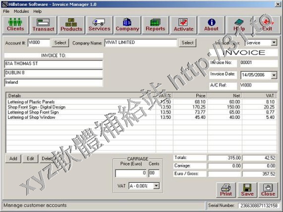 • Hillstone Invoice Manager v2.1.08 英文正式版(發票、賬單、賬戶管理軟體)