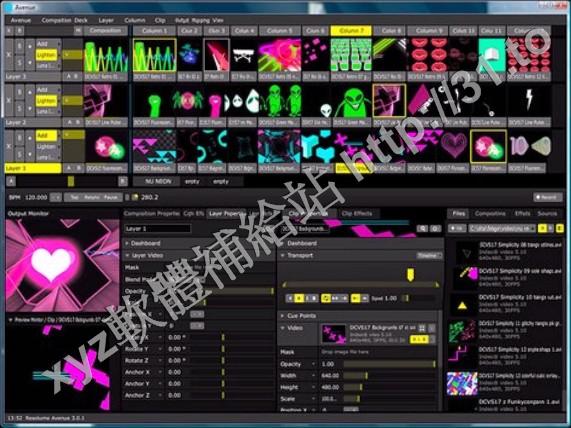 Resolume Avenue 為音樂娛樂場所(如舞廳)即興配影像的創作工具。可以有3層影像,6種效果。