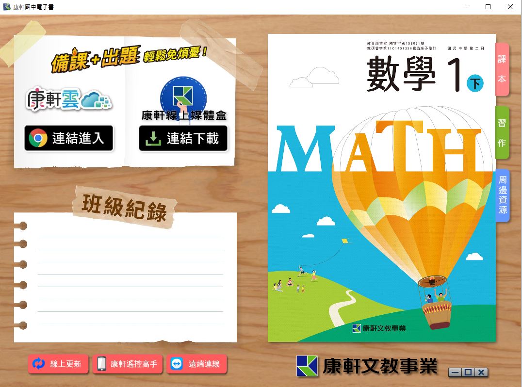 111學年下學期 國中 康軒版 數學電子書 1年級(含課本、習作含解答、教學資源)教學光碟