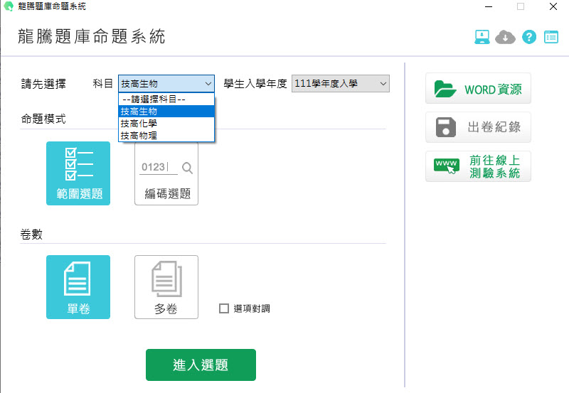111學年下學期 技術高中命題光碟 龍騰版 自然科(物理(A全、B上、B下)、化學(A(全)、B(全))、生物(A全))(108課綱) 題庫光碟