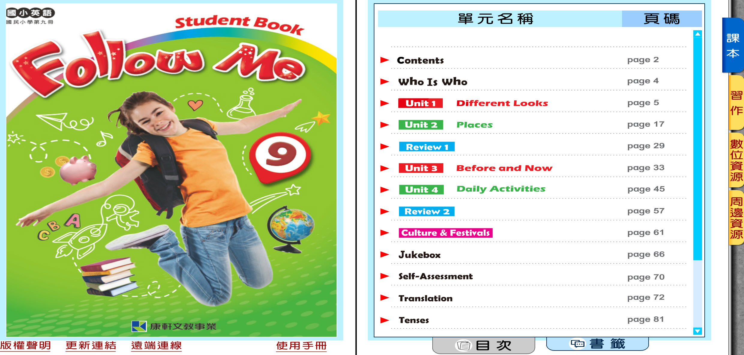 112學年上學期 國小 康軒版 英語電子書 Follow Me 第9冊(含課本、習作含解答) 教學光碟