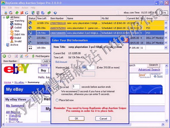 Auction Bidding Sniper for eBay v3.0 英文正式版(eBay的輔助交易軟體)