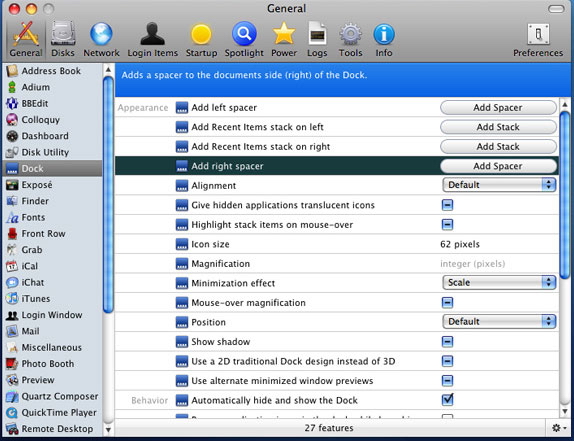可以開啟和關閉Macosx上百個隱藏功能. 並且可以幫助你修復和檢查系統. 本為英文版